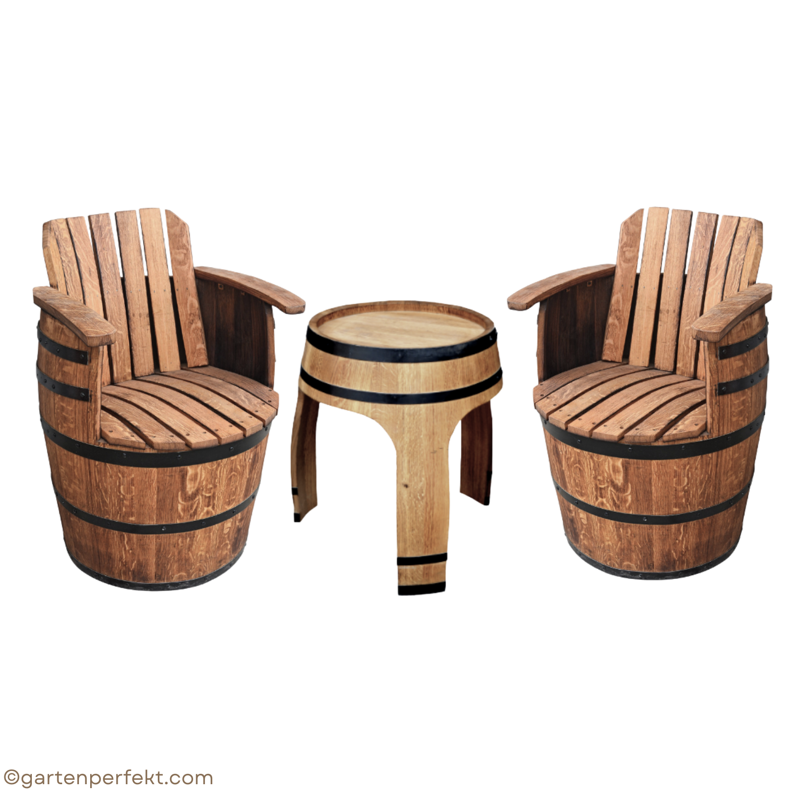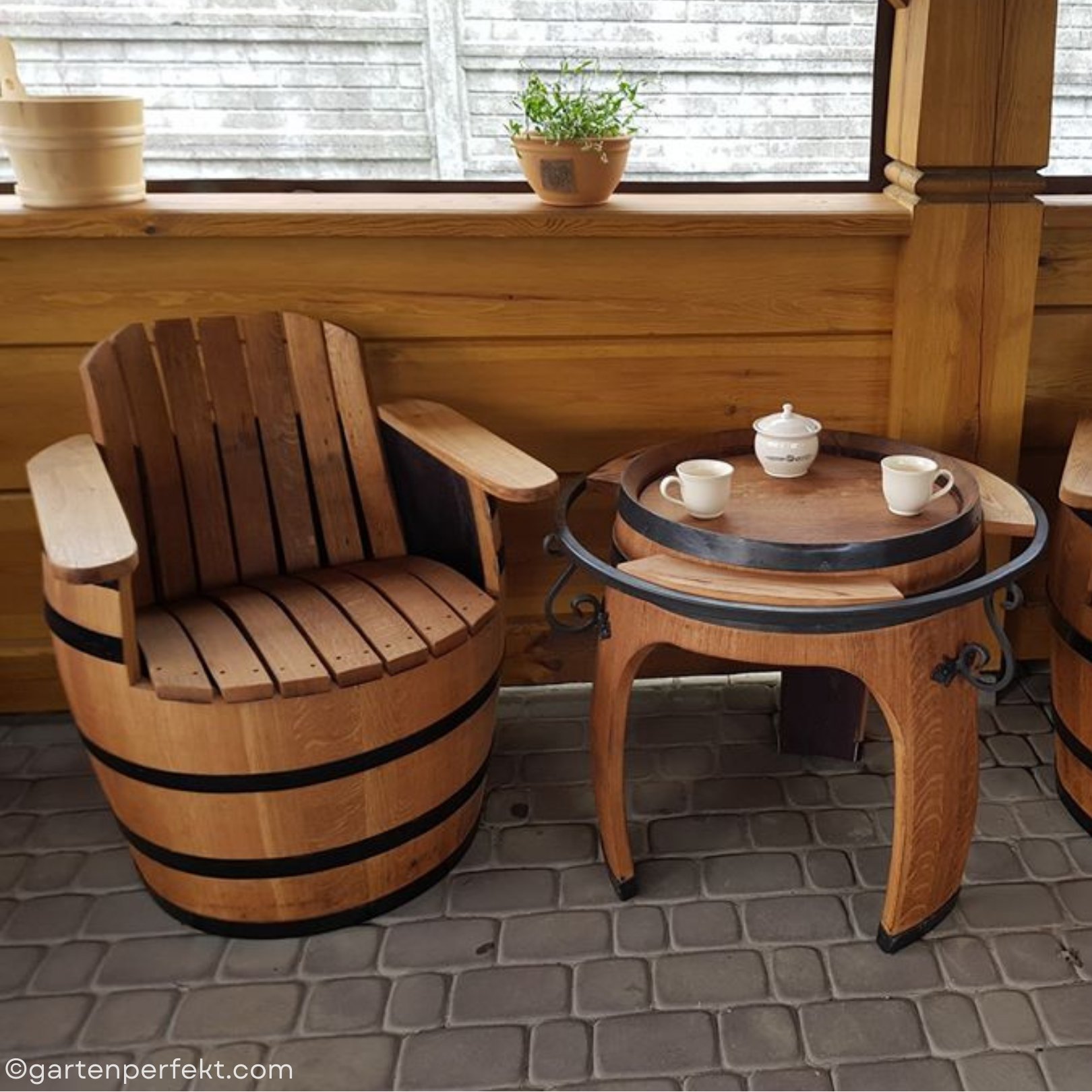 In unserem Sortiment finden Sie nicht nur Sessel, aber auch: Fassgarnituren, Fasstische, Fassbars, Fasshockers, sowie überdachte Gartenmöbel.