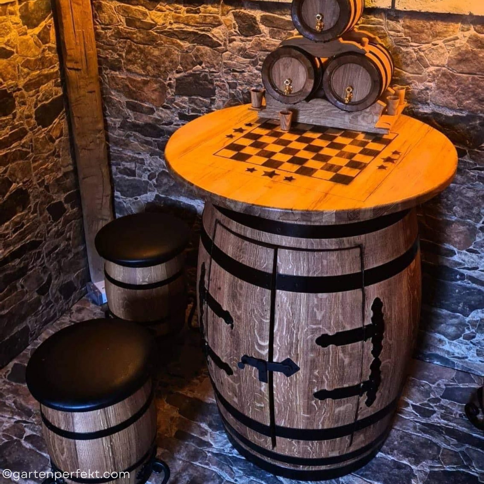 In unserem Sortiment finden Sie nicht nur Fasskönigbar, aber auch: Fassgarnituren, Fasstische, Fassbars, Fasshockers, Fass-Sessel, sowie überdachte Gartenmöbel.