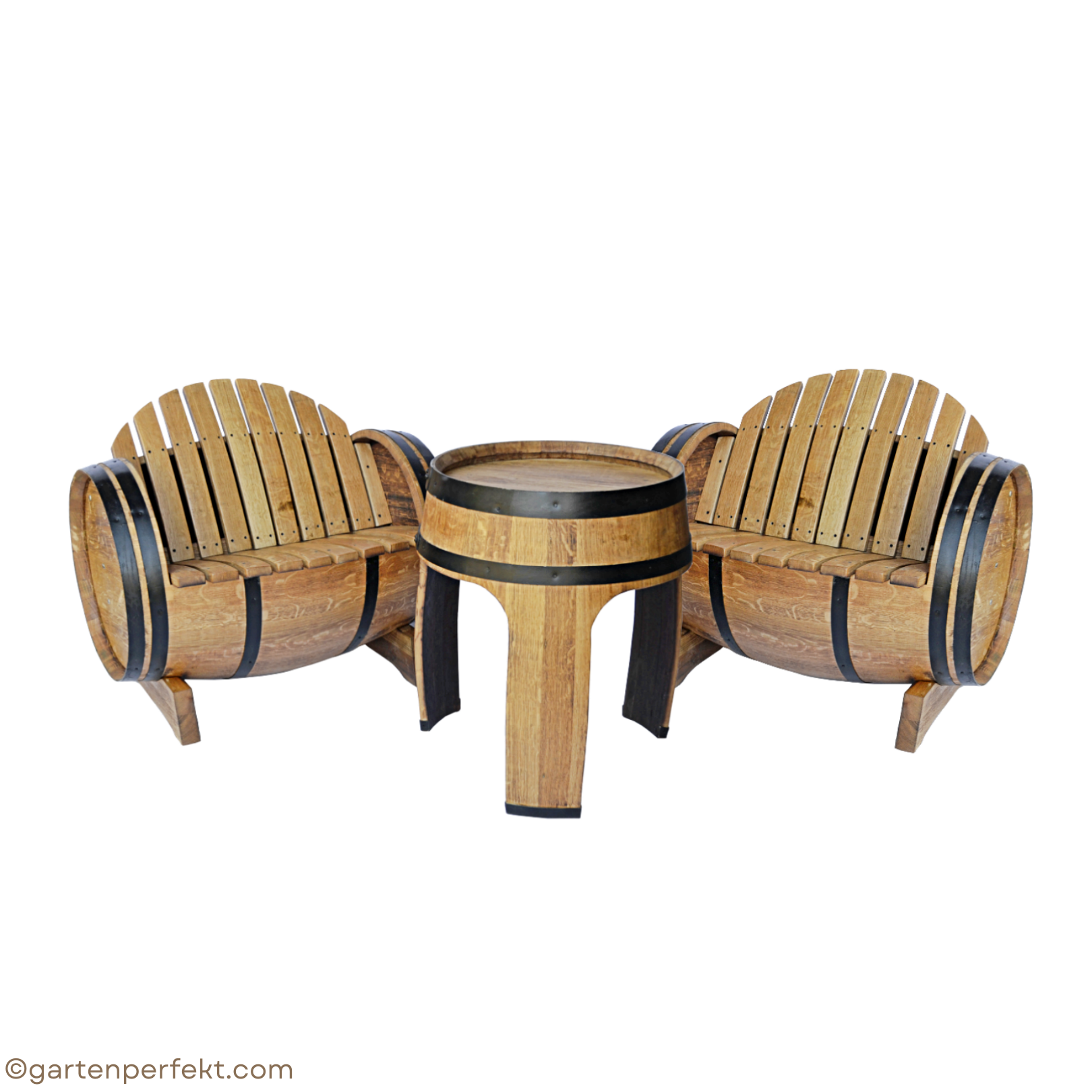 In unserem Sortiment finden Sie nicht nur Sessel aus Weinfass, aber auch: Fassgarnituren, Fasstische, Fassbars, Fasshockers, Fass-Sessel, sowie überdachte Gartenmöbel.